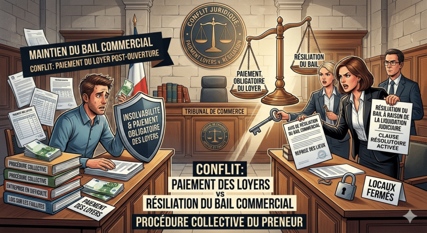 En clair, si l’acquisition de la clause résolutoire n’est pas définitivement jugée avant l’ouverture, le commandement de payer est privé d’effet par l’ouverture de la procédure collective, alors que l’action tendant à constater l’accomplissement de la clause résolutoire pour impayés antérieurs est paralysée.